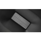 The membrane consists of three layers, laminated into a single unit: an aramid honeycomb core between two spread tow carbon fiber skins. The combination of these materials results in a moving surface with exceptional properties. Carbon fiber layers provide optimum stiffness in many different directions. The aramid honeycomb core has an excellent stiffness-to-weight ratio in the vertical direction, while graphene and boron whiskers mixed into the epoxy resin that binds the layers together increase the stiffness of crosslinks between carbon fibers. This in turn makes these bonds stronger, so the entire membrane becomes stronger and less noisy, but remains very light.