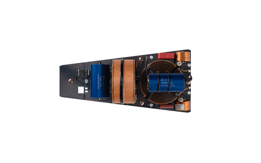 For the crossover filter, we went to great lengths to source the very best and most sophisticated state-of-the-art components. The coils are foil types wound with paper isolation and impregnated with resin under vacuum to make them mechanically extremely solid and stable.